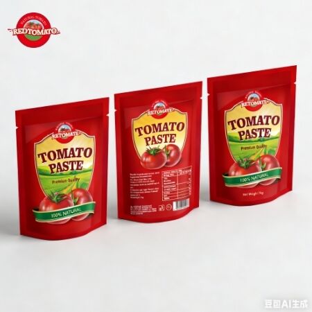 La nostra pasta di pomodori a sacchetto piatto e' progettata per la massima comodita' ed e' pensata appositamente per applicazioni a singola porzione.il sacchetto vanta un compatto, un design leggero che rende eccezionalmente facile da conservare e trasportare. Il suo sigillo a tenuta stagna e a prova di perdite blocca la freschezza del prodotto, previene le fuoriuscite disordinate e garantisce una gestione igienica,rendendola adatta sia per la distribuzione di servizi alimentari che per l'uso quotidiano domestico.